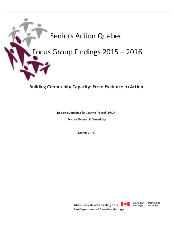 Report Seniors Action Quebec Focus Group Findings 2015 – 2016 This report highlights the focus group findings of Seniors Action Quebec from 2015-2016. Report Seniors Action Quebec Focus Group Findings 2015 – 2016