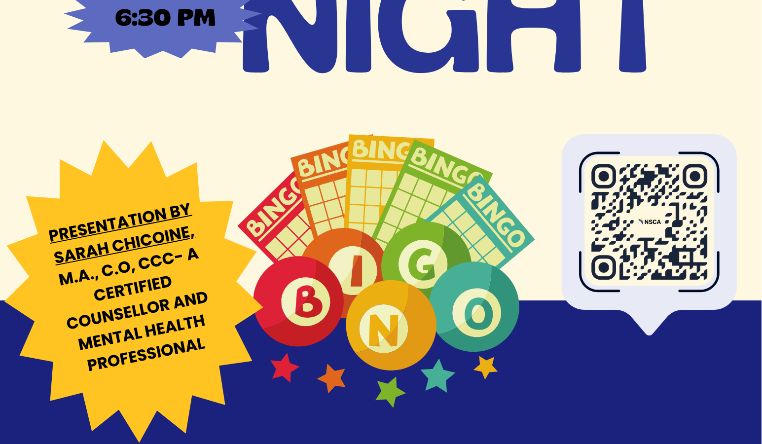 Bingo Night in Sept-Îles 26 March 2026 / Registration Open Published: October 31, 2025 Events Bingo Night in Sept-Îles 🎉 Positive Well-Being Bingo Night! Join us for a fun evening of bingo and conversation about well-being.