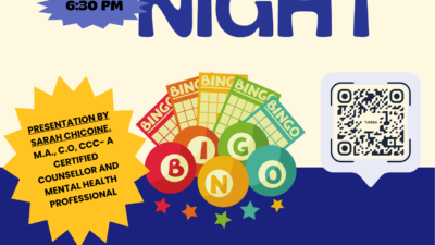 Bingo Night in Sept-Îles 26 March 2026 / Registration Closed Published: October 31, 2025 Events Bingo Night in Sept-Îles 🎉 Positive Well-Being Bingo Night! Join us for a fun evening of bingo and conversation about well-being.