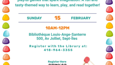Sept-Îles Story Time 15 February 2026 / Registration Closed Published: October 30, 2025 Events Sept-Îles Story Time Celebrate National Gumdrop Day! Little ones will enjoy colorful stories, sweet-inspired crafts, and playful games that spark imagination. A fun and tasty-themed way to learn, play, and read together!