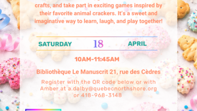 Story Time in Port-Cartier 18 April 2026 / Registration Closed Published: April 14, 2026 Events Story Time in Port-Cartier Celebrate National Animal Cracker Day with a fun and playful Story Time!